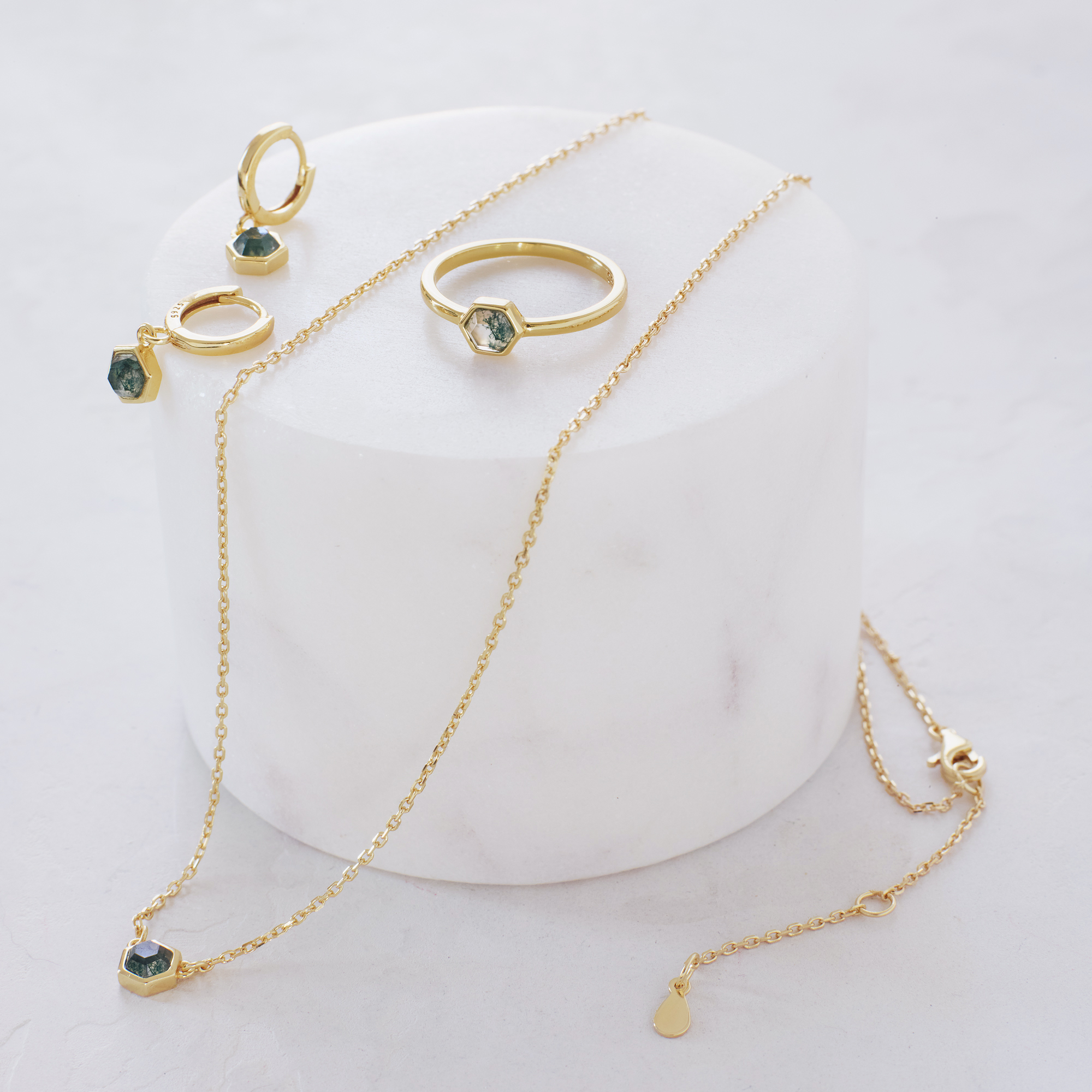 - Stone – Moss Agate – natural stones will have imperfections, in fact, that is what makes them unique